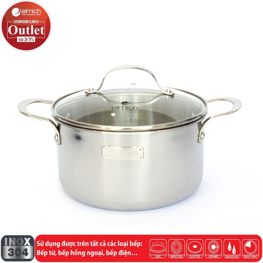 Nhà cửa & Đời sống > Dụng cụ nhà bếp > Chảo || Bộ Nồi 4 Chiếc Inox 304 3 Lớp Đáy Liền ELMICH Trimax 3742 Size 18/20/26 Chảo 26cmCòn hàng