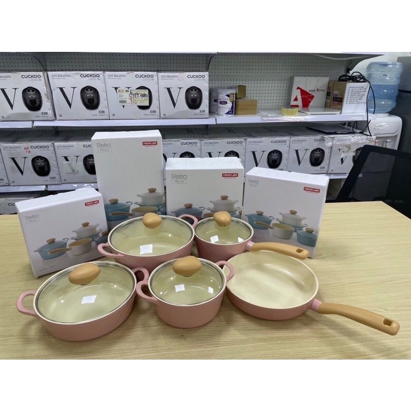 Bộ nồi 5 chiếc cảm ứng màu hồng Retro Baby Pink IH Neoflam cải tiến mới1. Thông tin chung bộ nồi Neoflam