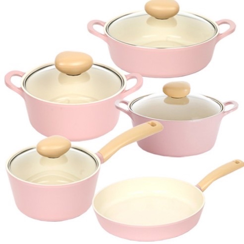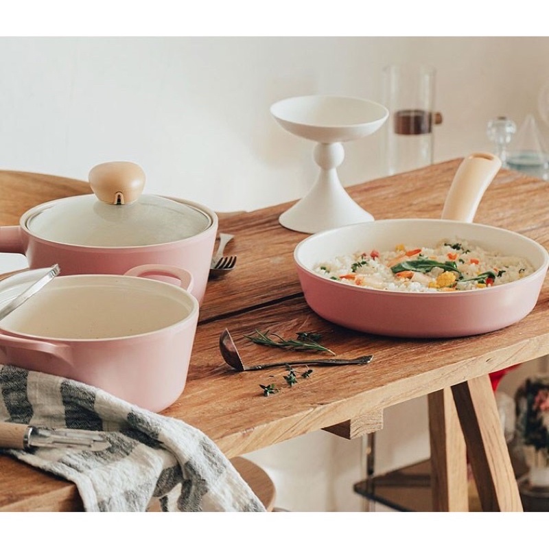 Nhà cửa & Đời sống > Dụng cụ nhà bếp > Nồi || Bộ nồi 5 chiếc cảm ứng màu hồng Retro Baby Pink IH Neoflam cải tiến mớiCòn hàng