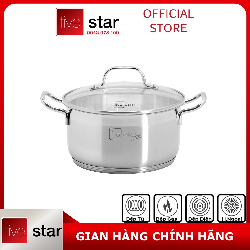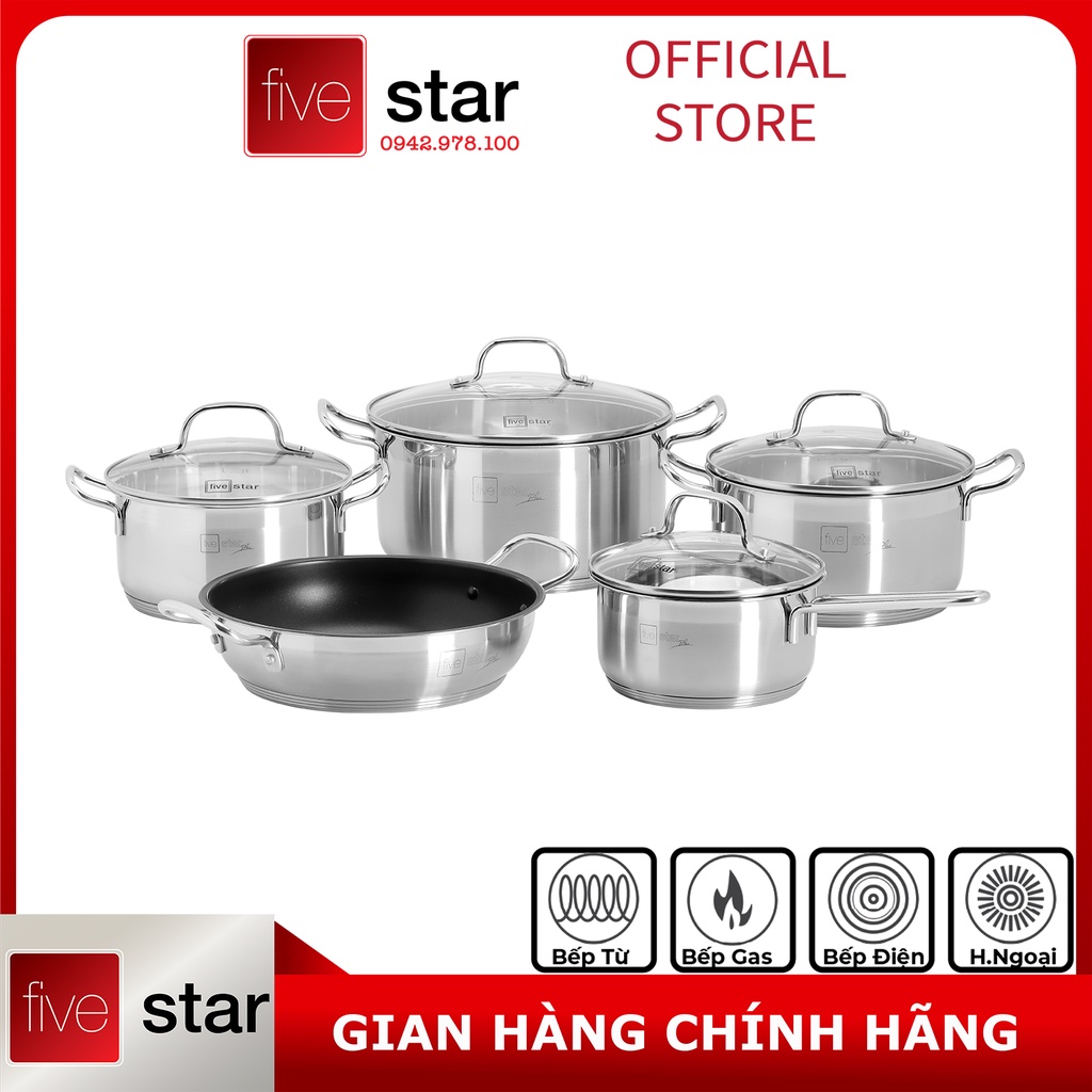 Nhà cửa & Đời sống > Dụng cụ nhà bếp > Nồi || [Mã LIFEMALL253 giảm 100K đơn 250K] Bộ Nồi 5 Đáy Inox 304 Cao Cấp Bếp Từ Fivestar FPB55D001 Nắp Kính , tặng 10 muỗng ănCòn hàng