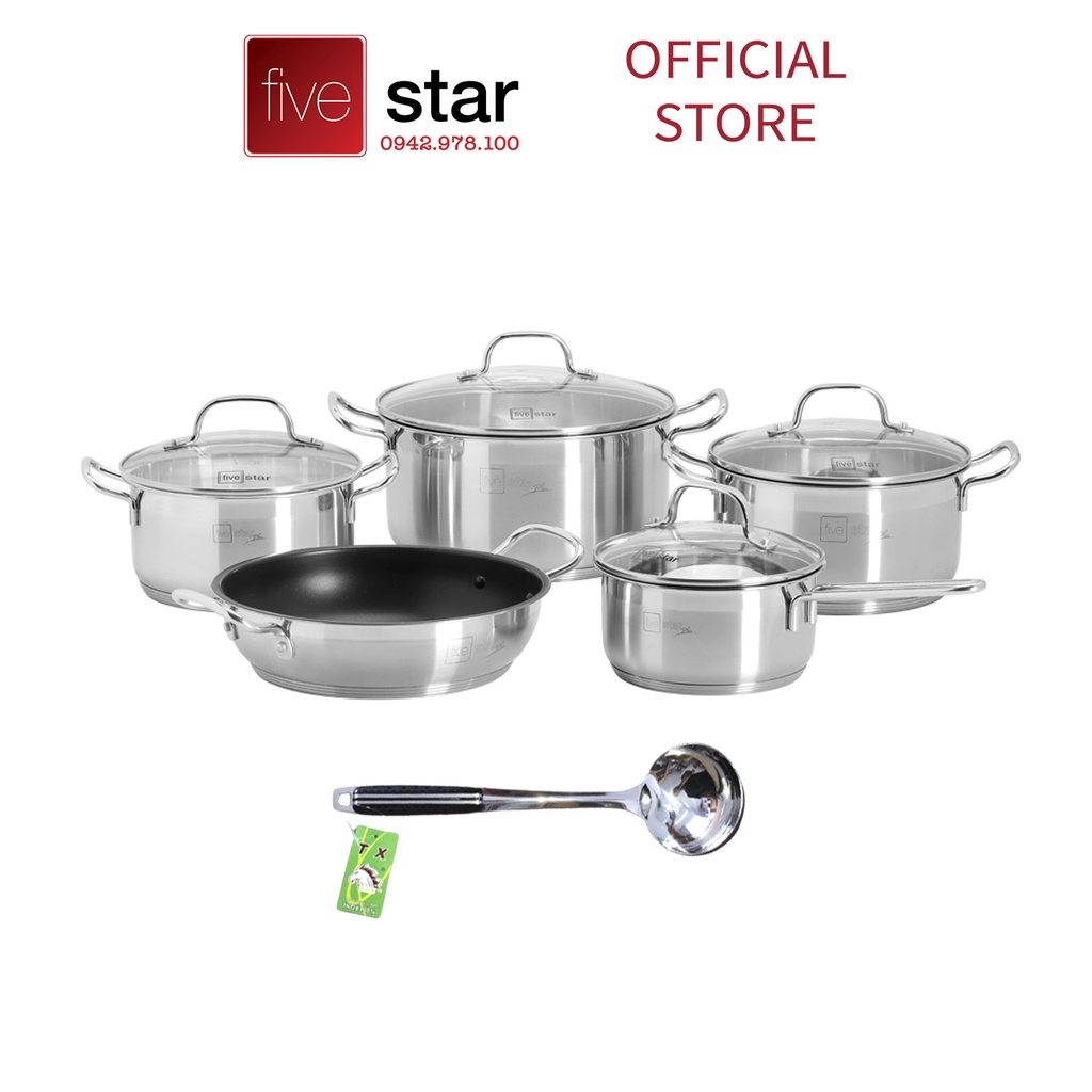 Nhà cửa & Đời sống > Dụng cụ nhà bếp > Nồi || Bộ Nồi 5 Đáy Inox 304 Cao Cấp Bếp Từ Fivestar Plush FPB55D001 Nắp Kính , bảo hành 25 năm , tặng 1 vá canhCòn hàng