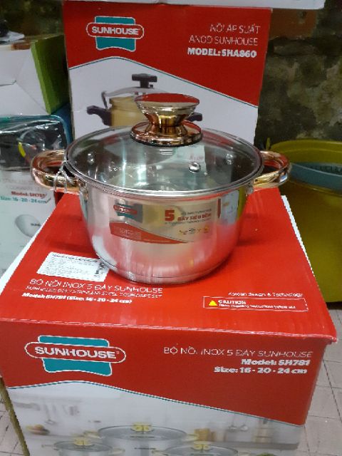 Giới thiệu NỒI 5 ĐÁY SUNHOUSE 16 Cm Cao câps