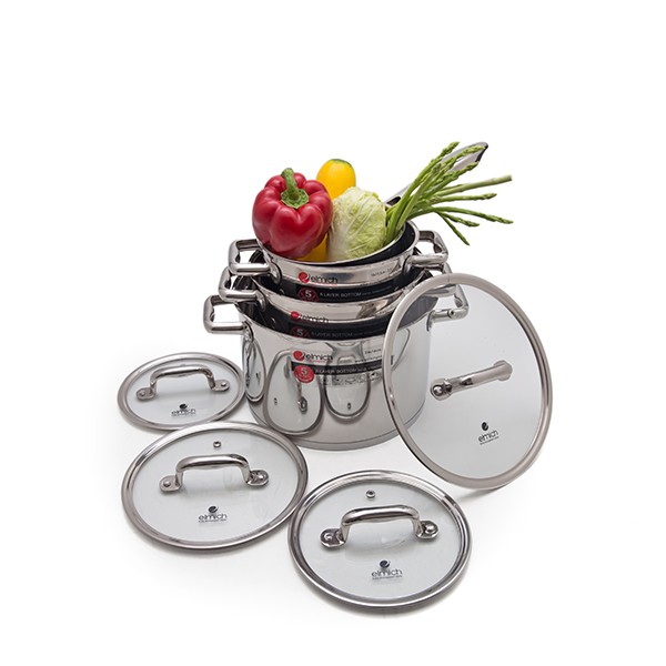 Bộ nồi 5 đáy vung kính inox 304 EL3670 Elmich nhập cộng hòa séc