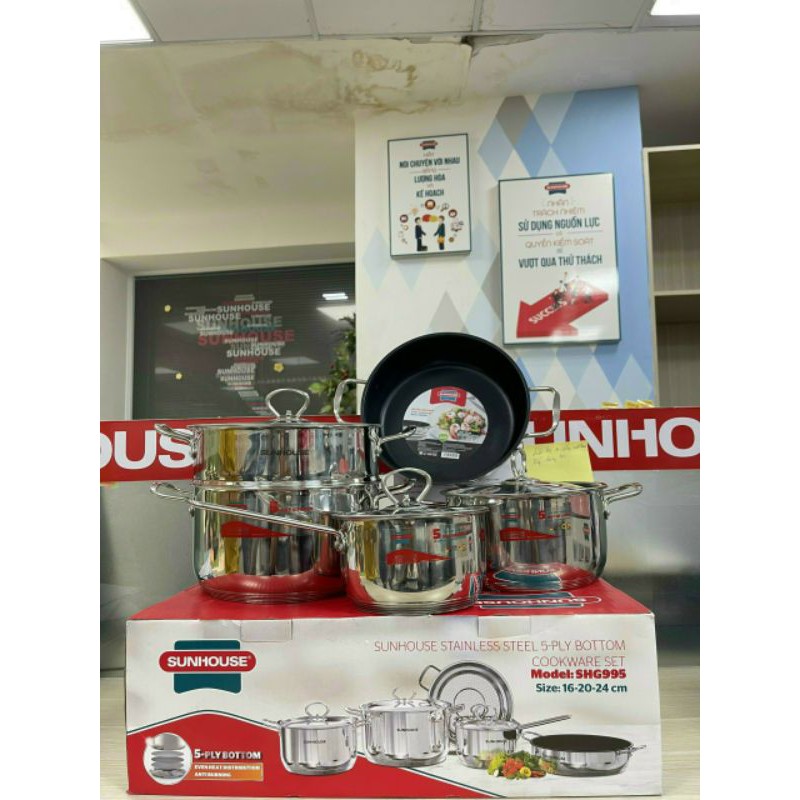 Nhà cửa & Đời sống > Dụng cụ nhà bếp > Nồi || Bộ nồi 5 món 5 ĐÁY SUNHOUSE SHG995 gồm 2 nồi, 1 quánh, 1 xửng, 1 chảo DÙNG ĐƯỢC MỌI LOẠI BẾPCòn hàng