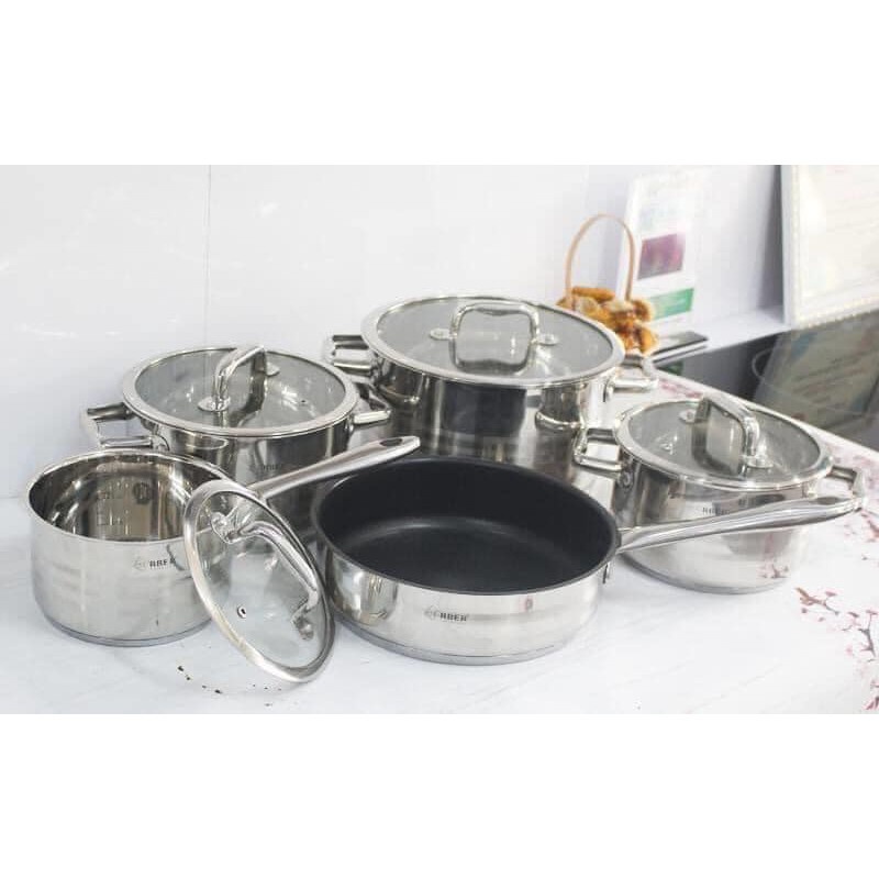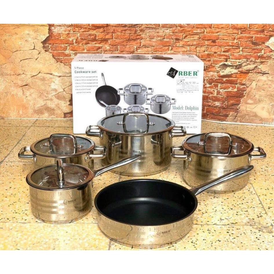 Nhà cửa & Đời sống > Dụng cụ nhà bếp > Nồi || Bộ nồi 5 món ARBER AN05 Dolphin, Bộ nồi inox 3 đáy Arber cao cấp thương hiệu Đức chính hãng -NMCòn hàng