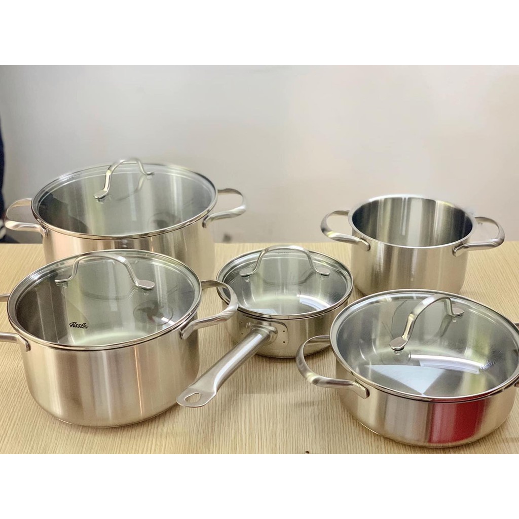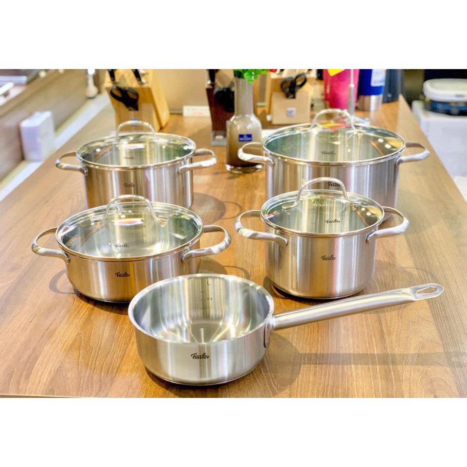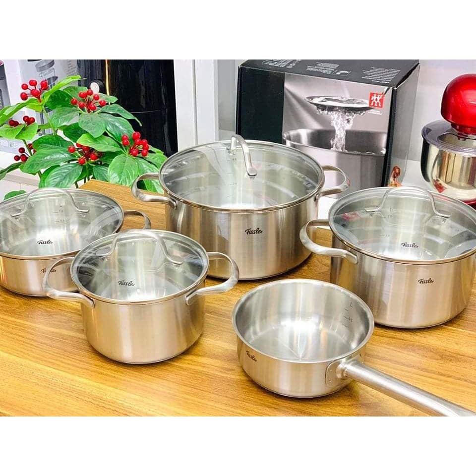 🎯 Bộ nồi Fissler Toronto 5 nồi (chất liệu thép bóng mờ sang, bền, chất)👉 Sử dụng chất liệu Inox 18/10 bóng mờ an toàn tuyệt đối cho sức khỏe, bền đẹp, dùng lâu ko bị cũ.