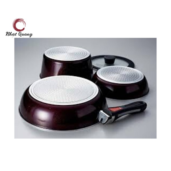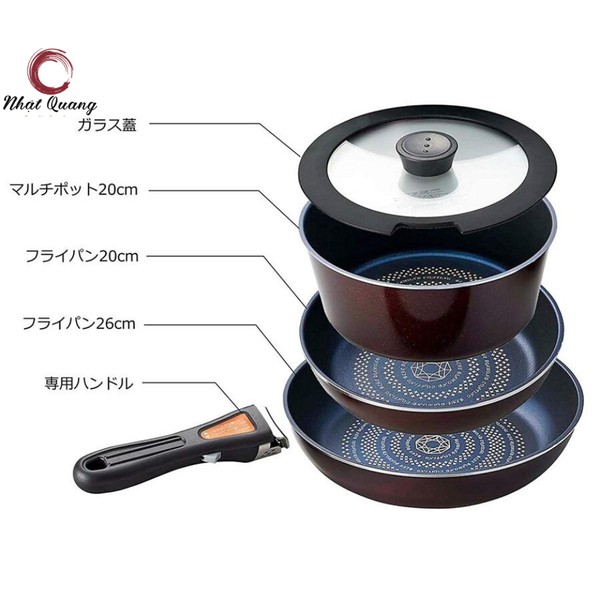 ✔️ Bộ nồi 5 món Pearl Metal được là từ hợp kim , được phủ lớp Flo và kim cương xanh chống bám dính hiệu quả, rất khó bị trầy xước