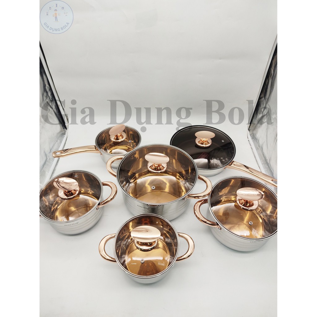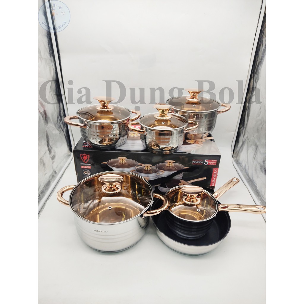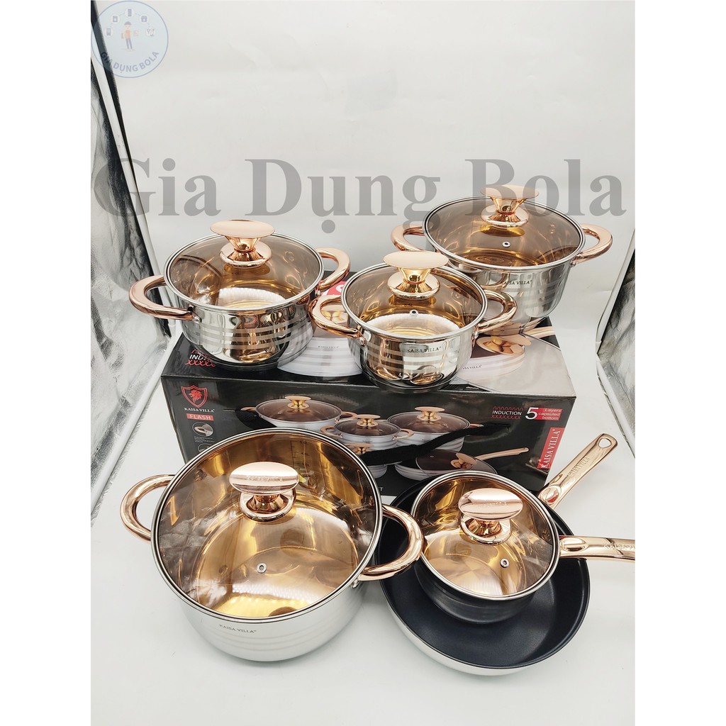 Bộ nồi 6 món Kaisa Villa có nắp vung kính - Dùng được cho bếp từ