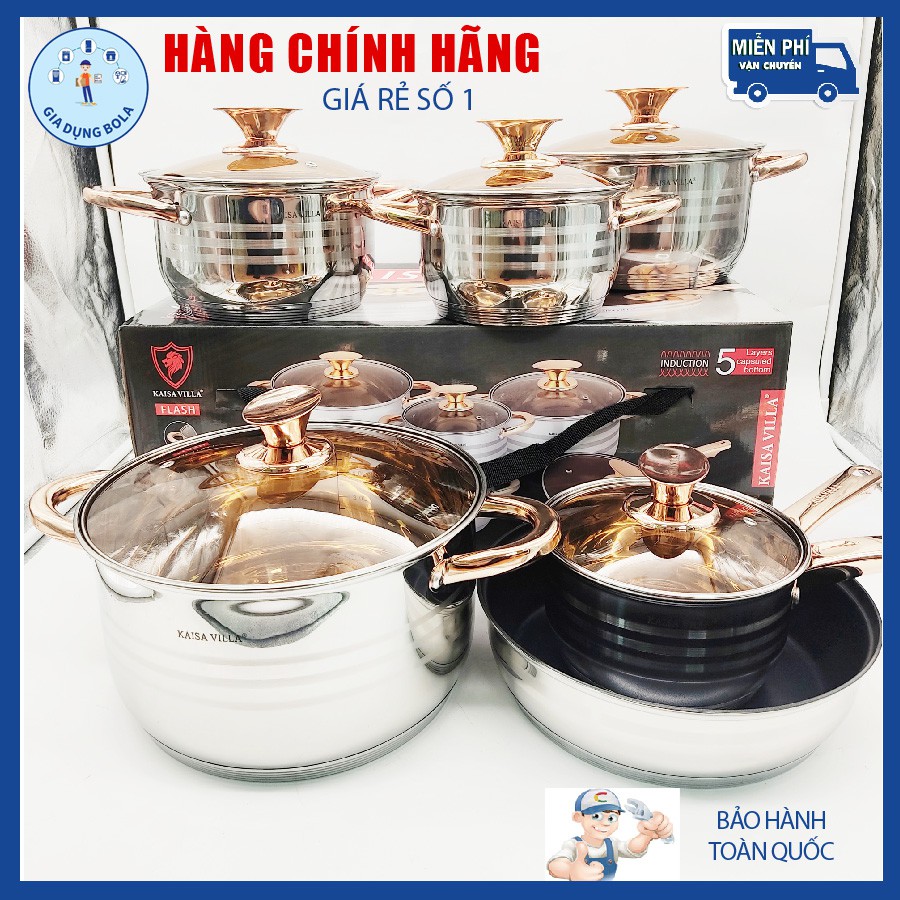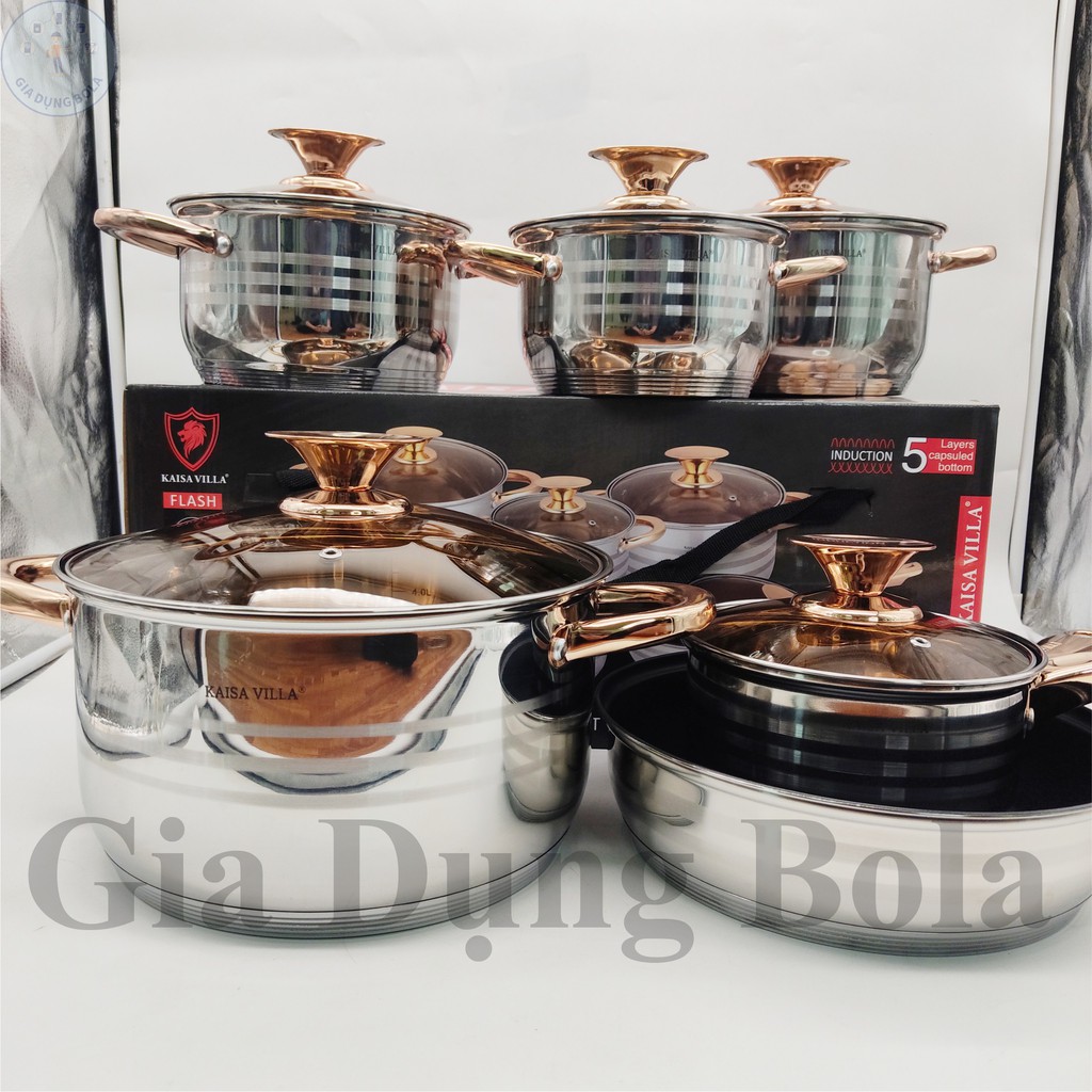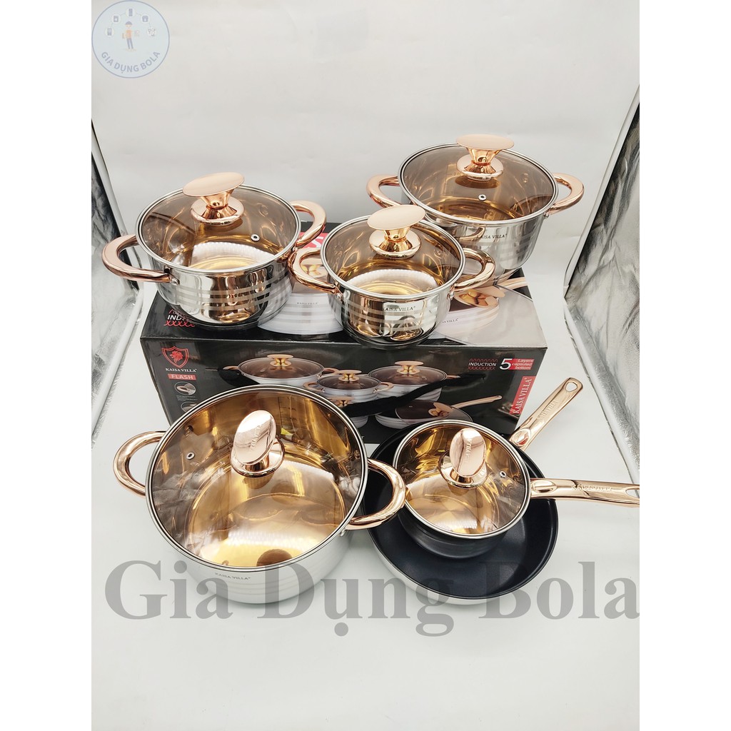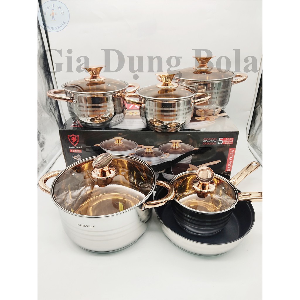 Bộ nồi 6 món Kaisa Villa có nắp vung kính - Dùng được cho bếp từ