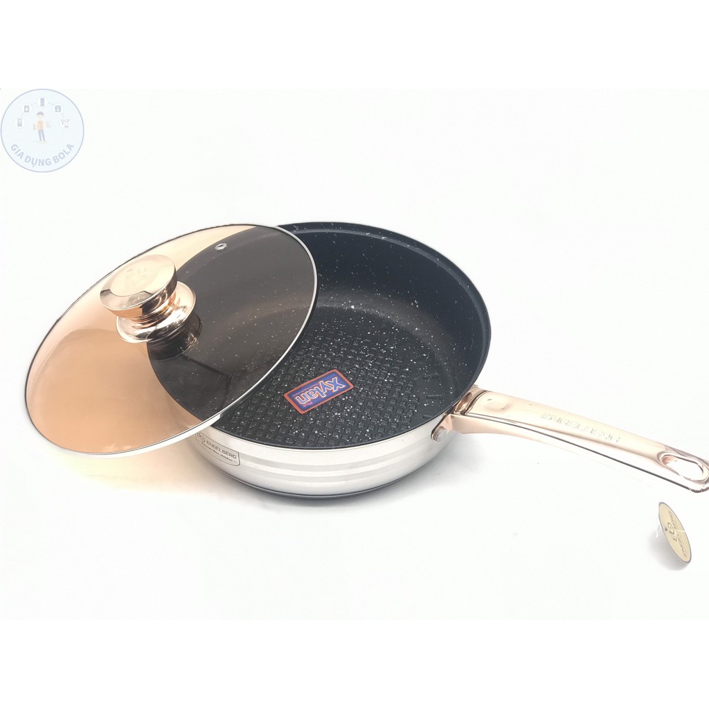 – 1 Chảo có tay cầm tráng men đá cao cấp chống dính tuyệt đối có nắp kính :đường kính 24 cm, dung tích 3,4L chiều cao 7,5 cm