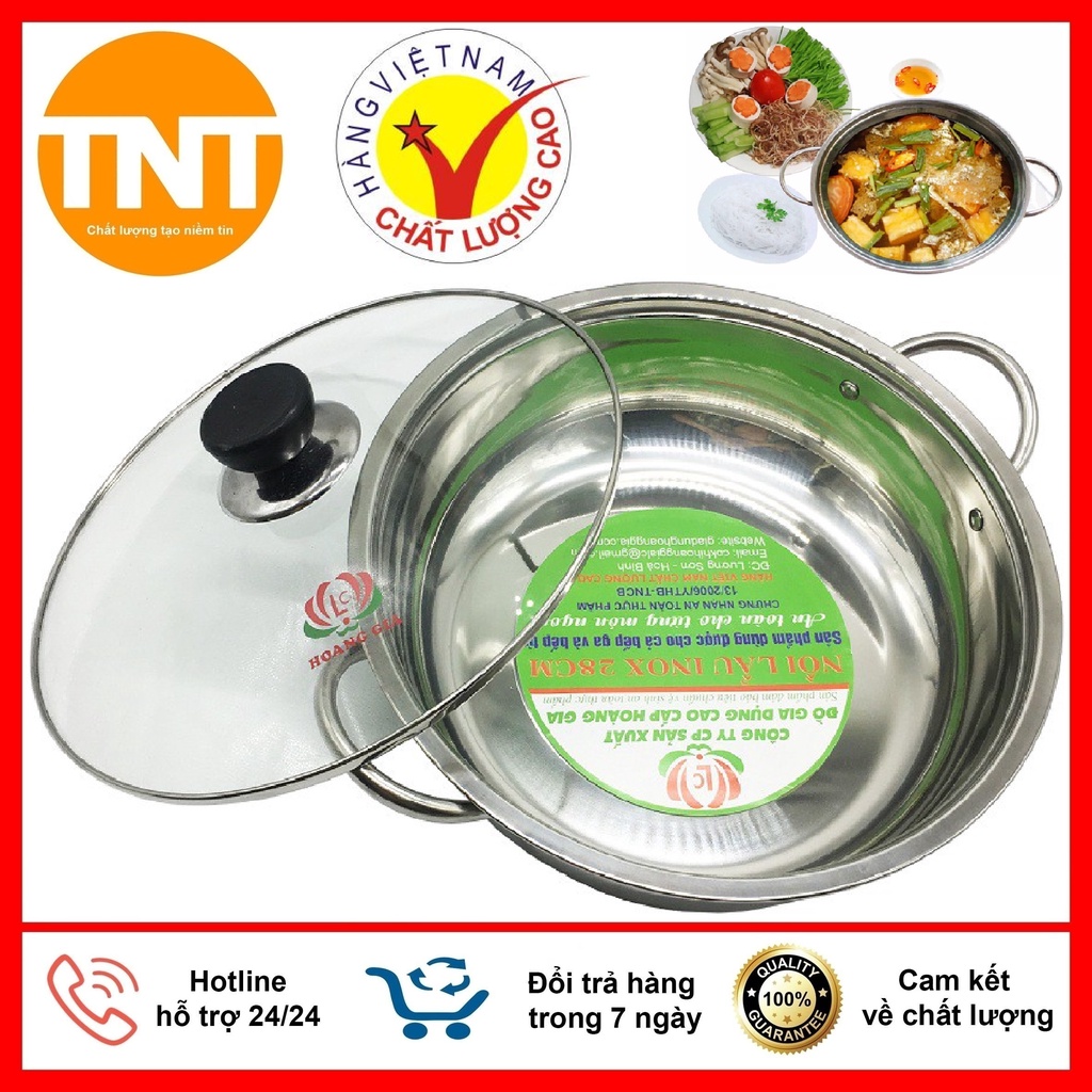 Thông tin sản phẩm : Nồi ăn lẩu, nấu canh, luộc rau...✔️ Nồi lẩu inox size 28 được sản xuất hoàn toàn tại Việt Nam. Sản phẩm được làm từ chất liệu inox SUS201,chất liệu cao cấp được ưa chuộng nhất trong ngành sản xuất đồ bếp,đồ gia dụng, chống gỉ và an toàn tuyệt đối cho sức khỏe người tiêu dùng.
