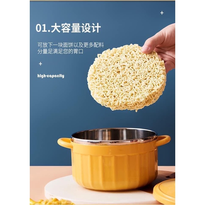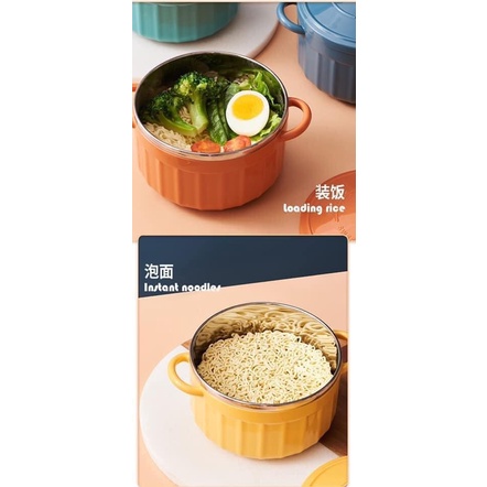 Nồi Ăn Mì Ruột Inox giữ nhiệt có quai cầm tô đựng thực phẩm an toàn