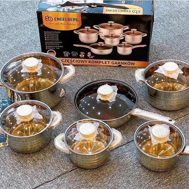 🍒Bộ nồi ANGELBERG 6 món 12 chi tiết đáy từ nhập khẩu từ Đức 💯Set 6 món -12 chi tiết bao gồm :