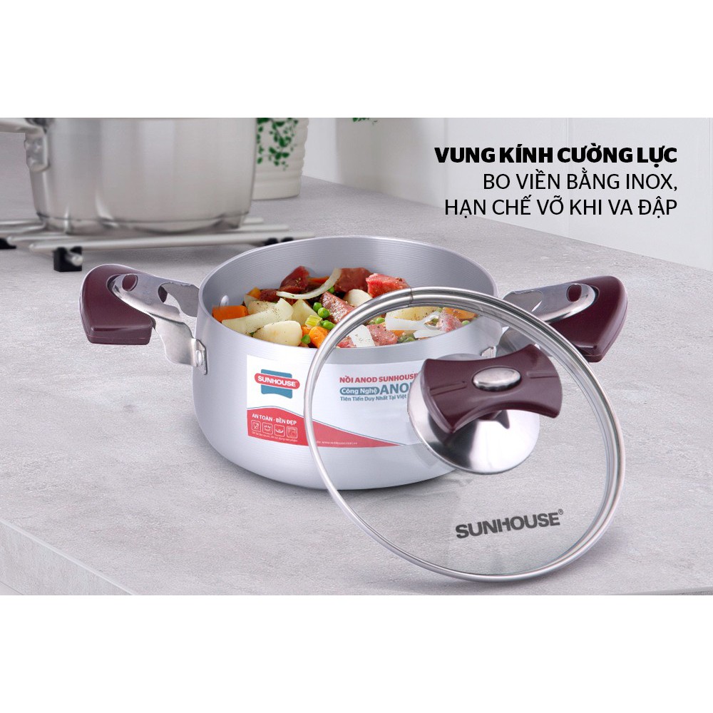 ✔️ Bền bỉ tuyệt vời: Với độ bền cứng gần bằng kim cương, các nồi nhôm Anod SUNHOUSE giảm tối đa tình trạng móp méo khi va đập. Đặc biệt, khác với nồi nhôm thông thường, nồi nhôm Anod hoàn toàn không bị nổi đốm muối trắng hay ăn mòn dù tiếp xúc với những món chua, mặn.