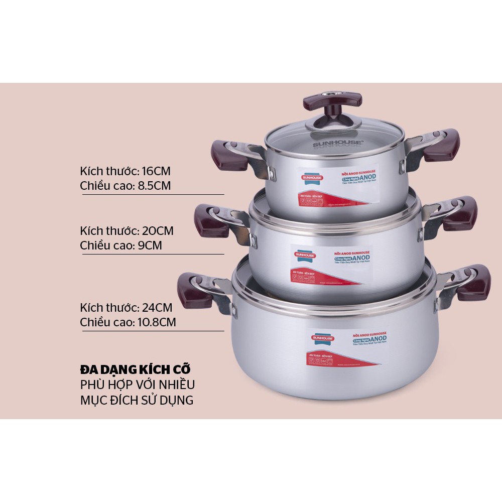 Nhà cửa & Đời sống > Dụng cụ nhà bếp > Nồi || Bộ Nồi ANOD 3 Chiếc Cao Cấp SUNHOUSE SH6633-2 Quai EBCòn hàng