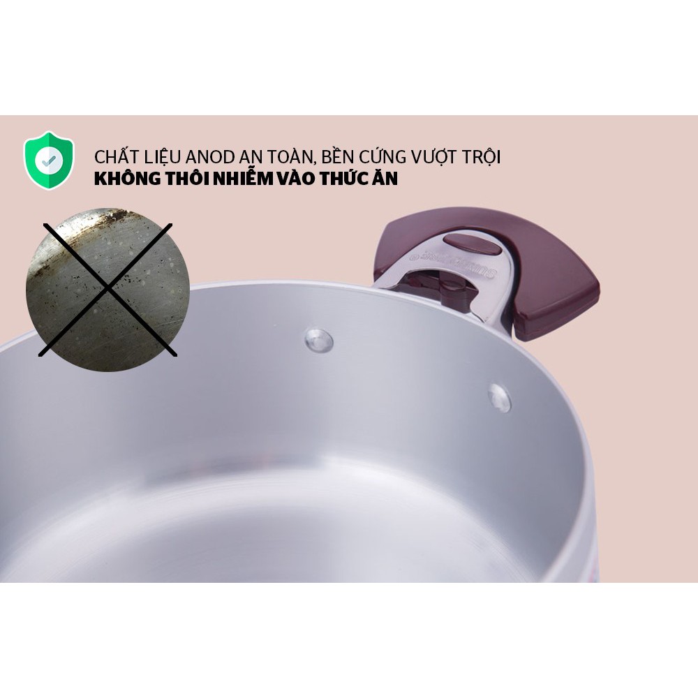 Nhôm Anod ưu điểm nổi trội về độ bền cứng gần bằng kim cương và sự an toàn tuyệt đối, không thôi nhiễm thực phẩm trong quá trình nấu nướng. Đặc biệt, công nghệ này còn tạo nên phương pháp lên màu tự nhiên, giúp sản phẩm có được những màu sắc bắt mắt. bền bỉ, không phai màu vào thực phẩm ngay cả khi sử dụng trong thời gian dài.