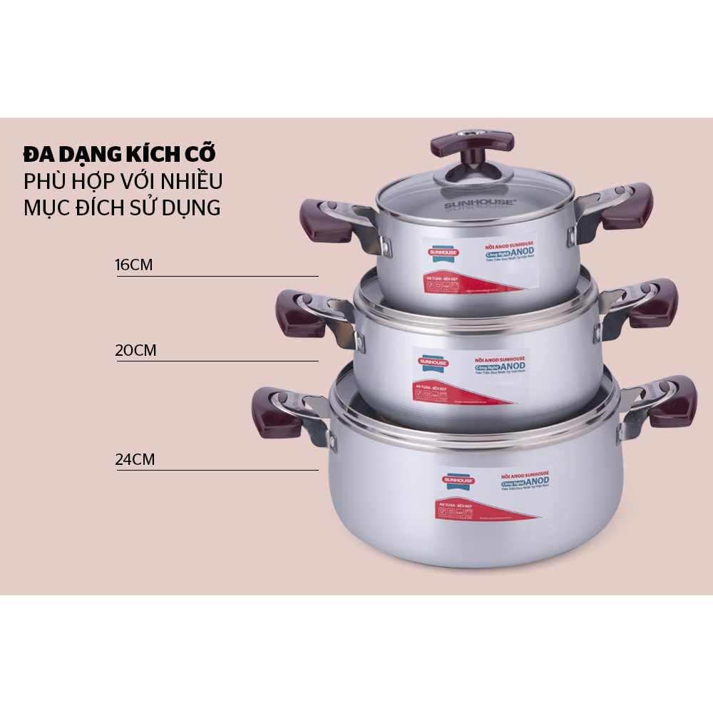 Nhà cửa & Đời sống > Dụng cụ nhà bếp > Nồi || Bộ nồi anod SUNHOUSE SH6633 - Hàng Chính HãngCòn hàng