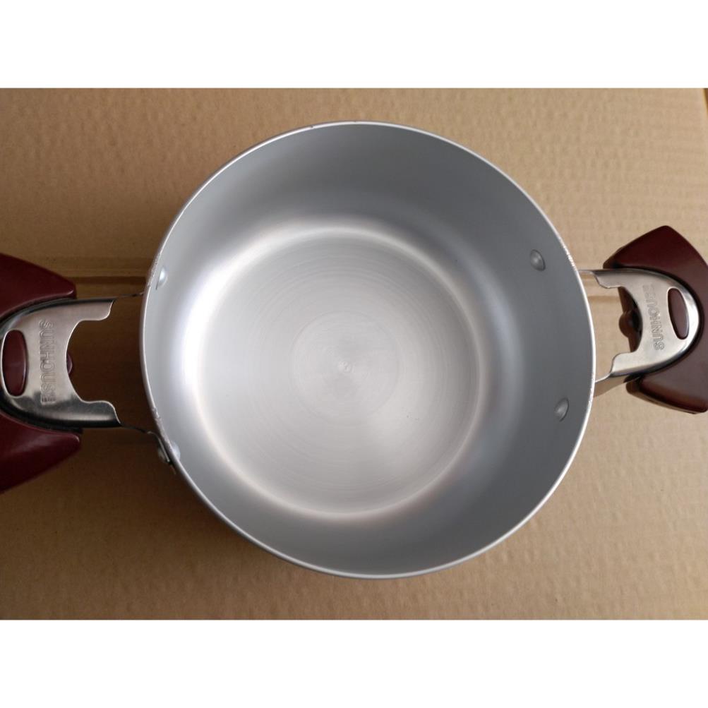 Công nghệ Anodized lạnh là một trong những công nghệ sản xuất đồ gia dụng tiên tiến được ứng dụng tại nhà máy sản xuất đồ gia dụng SUNHOUSE, sử dụng điện phân làm oxy hóa bề mặt của nhôm, tạo nên lớp vỏ bọc cứng bên ngoài lớp nhôm thông thường, tạo nên liên kết nhôm cực mạnh là nhôm Anod.Nắp nồi lằm bằng kính chịu nhiệt hai lớp dày 5mm