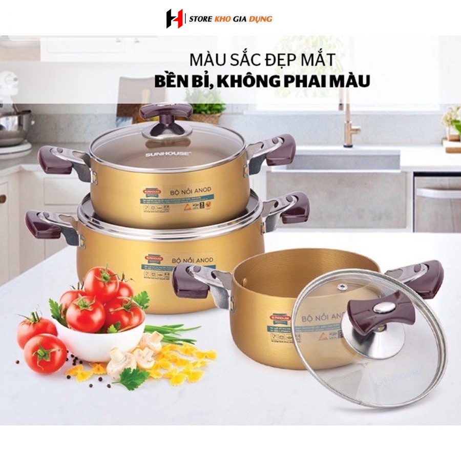 ☑️ TẠI SHOP MÌNH: FREE SHIP TỪ ĐƠN 50K NHA CẢ NHÀ☑️ Bộ Nồi Anod Sunhouse SH6634 Chất Liệu Nhôm Dùng Bếp Gas Bếp Hồng Ngoại