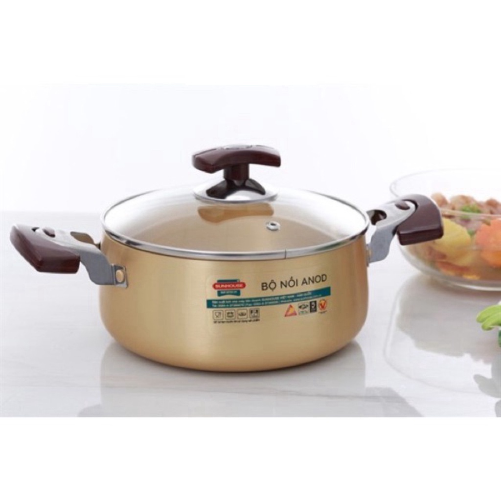 Bộ Nồi Anod Sunhouse SH6634 Chất Liệu Nhôm Dùng Bếp Gas Bếp Hồng Ngoại