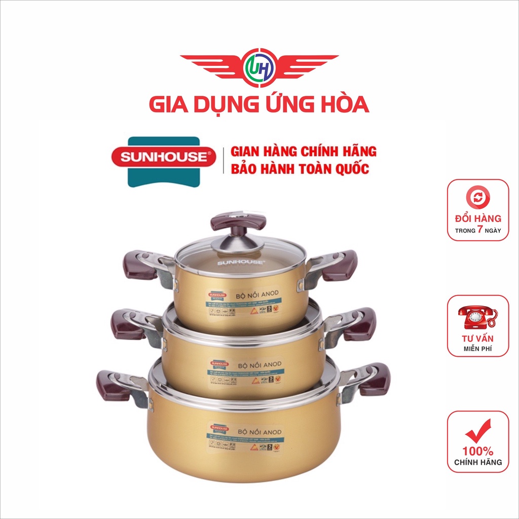 Nhà cửa & Đời sống > Dụng cụ nhà bếp > Nồi || Bộ nồi Anod Sunhouse SH6634 chất liệu nhôm dùng bếp gas bếp hồng ngoạiCòn hàng