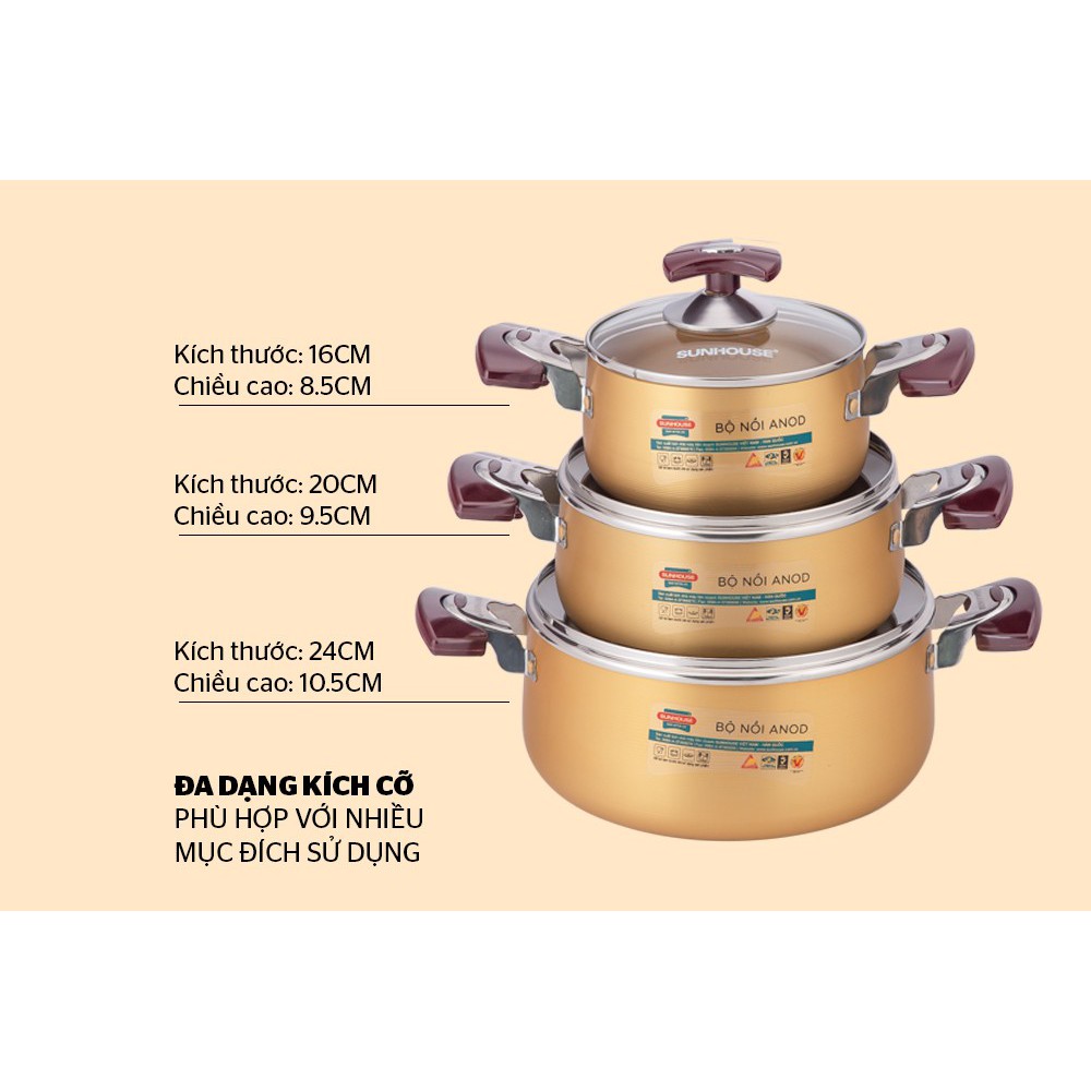 Bộ nồi anod SUNHOUSE SH6634 - Hàng Chính Hãng