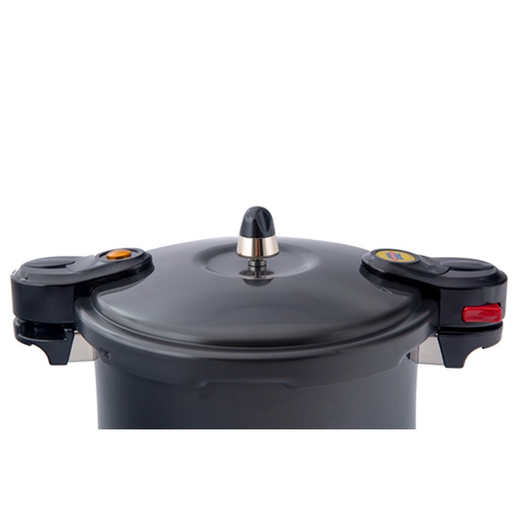 Nồi áp suất anod Sunhouse LC600 có tay cầm bằng nhựa chịu nhiệt cao, cách nhiệt tốt, thiết kế to bản rất dễ nâng nhấc. Ngoài ra, trên tay cầm còn có khóa đóng mở nắp được thiết kế dạng nút bấm bập bênh, thao tác đóng mở nắp rất dễ dàng không chỉ đảm bảo an toàn mà còn rất tiện dụng.