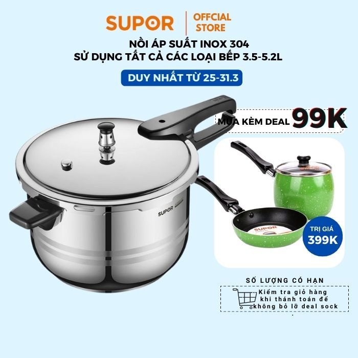 Nhà cửa & Đời sống > Dụng cụ nhà bếp > Nồi || Nồi áp suất bếp từ Supor 3.5-5.2L inox 304 5 Lớp cao cấp bảo hành 12 tháng hàng chính hãngCòn hàng
