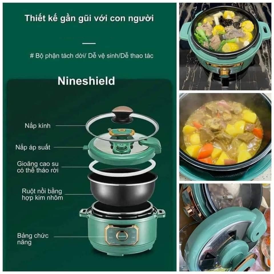 - Nồi Áp Suất Điện Đa Năng NINESHIELD Nấu Nướng Đa Dạng, Nấu Lẩu, Nấu Cơm, Hầm, Nấu Soup, Chiên, Xào...- ĐẶC ĐIỂM SẢN PHẨM: