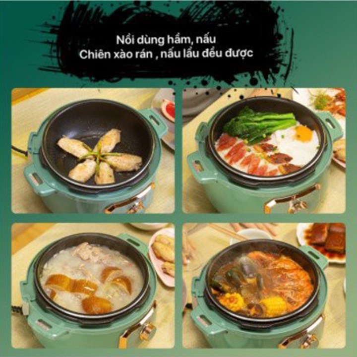 - Nồi áp suất đa năng AUX sở hữu 6 chức năng chính: Làm lẩu, Nấu cơm, Nấu súp, Hấp hầm, Chiên rán, Hâm nóng. Với những chức năng này AUX cho phép bạn có thể thực hiện tất cả các món ăn như: nấu cơm, sườn, cá, cháo, cháo ngũ cốc, cháo cho trẻ, thịt/gà, bò/cừu, giữ ấm, hâm nóng, hấp, hầm xương/hầm giò… và rất nhiều các món ngon khác.