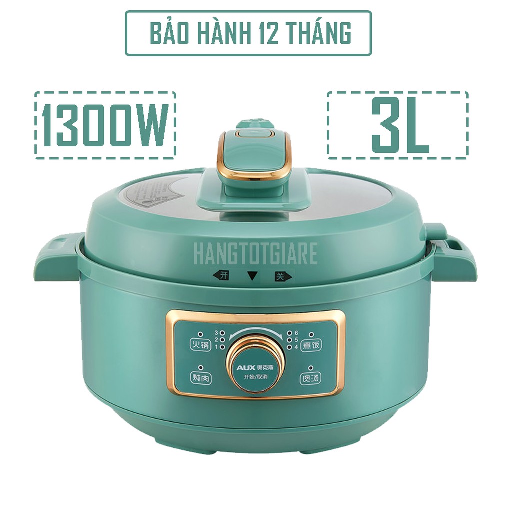 Nồi Áp Suất Đa Năng AUX Dung Tích 3L, Công Suất Lớn 1300W - Nấu Lẩu, Hầm Cháo, Chiên Sào Tiện Dụng 3-5 Người Ăn𝐓𝐡𝐨̂𝐧𝐠 𝐬𝐨̂́