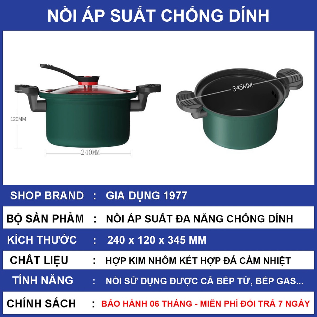 Gia Dụng 1977 cam kết với khách hàng về sản phẩm Nồi áp suất đa năng, nồi ninh hầm chống dính dung tích 3.5 lít cao cấp:
