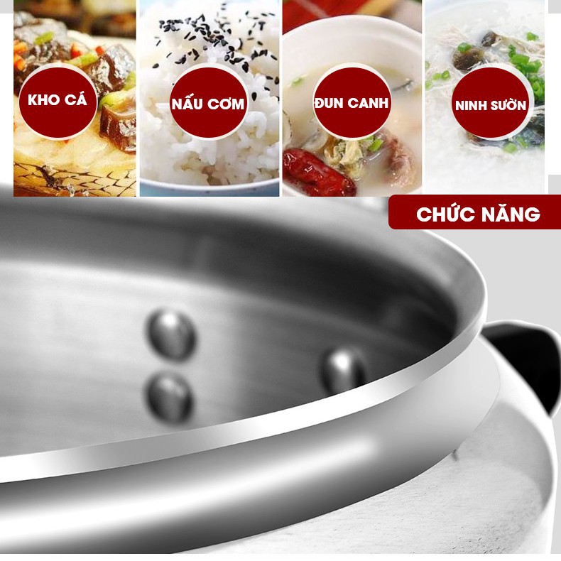 -Lòng nồi rộng, sáng, mịn, dày, chống cháy, đảm bảo thích hợp tất cả món ăn khó chế biến nhất.