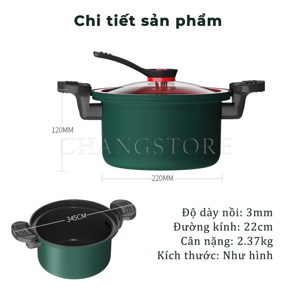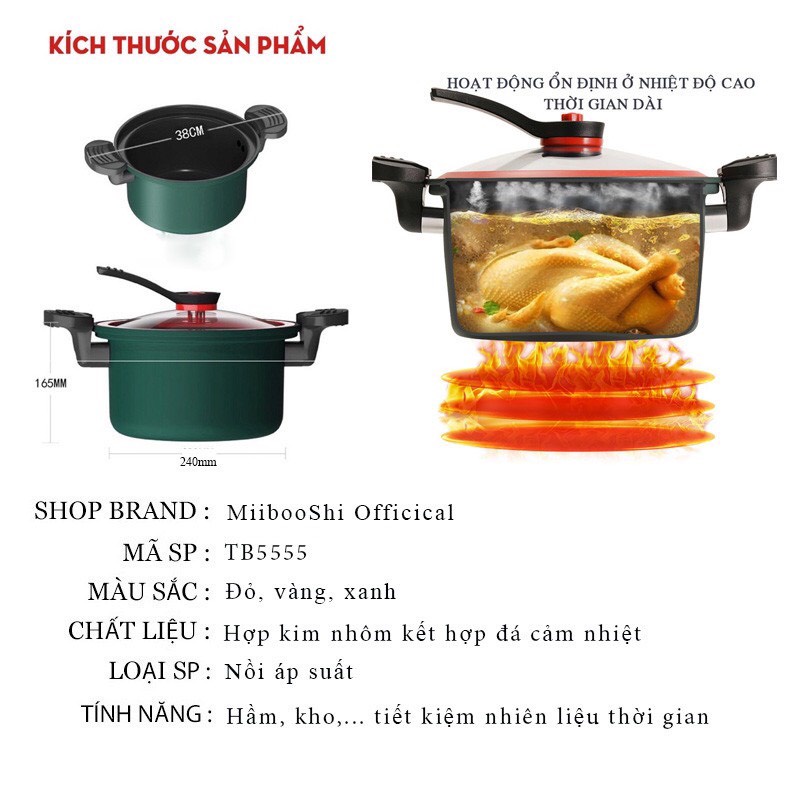 - Thoải mái chế biến mọi món ngon hầm canh, nấu cơm, kho, rán,... cực nhanh chóng. Dễ sử dụng có thể dùng cho cả bếp Gas và bếp điện