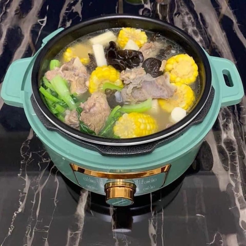 😍nắp áp suất và một nắp thủy tinh. Có thể làm nồi lẩu, nấu cơm, chiên, xào, rán đều được. Lõi nồi dày 5 lớp, dùng nấu gà thuốc bắc, hầm xương, nấu cháo rất mềm và nhanh chín.