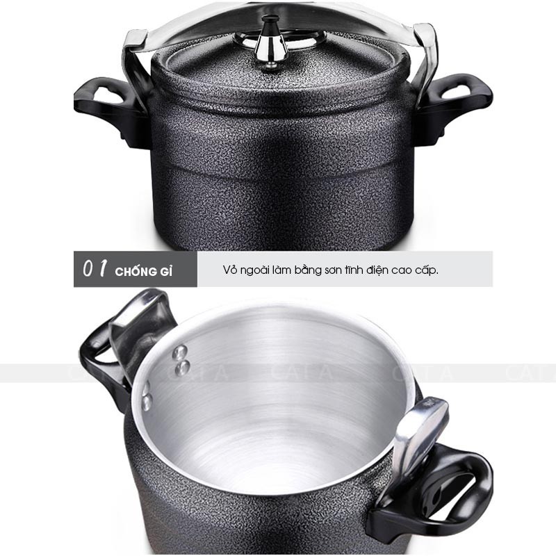 - Nồi áp suất sử dụng lớp chống dính cao cấp theo tiêu chuẩn quốc tế. Vỏ sơn được sơn tĩnh điện.
