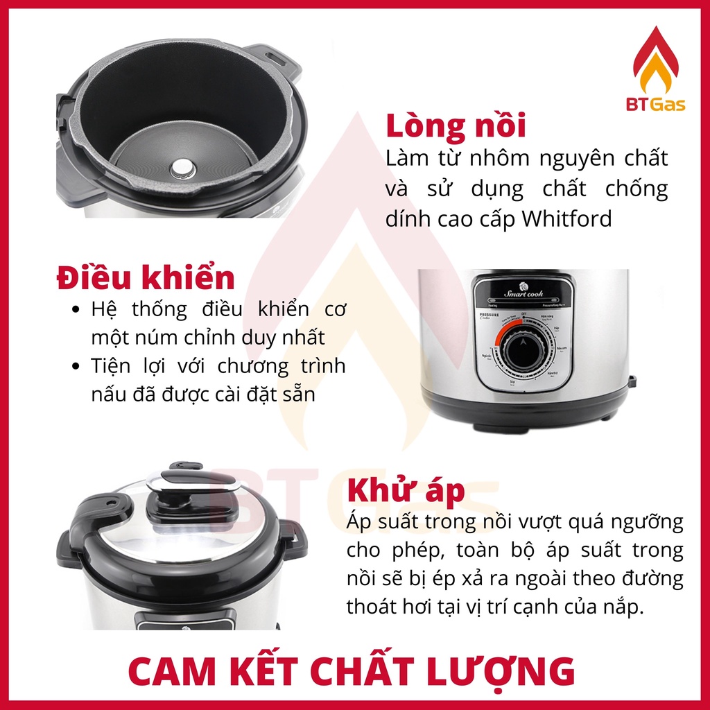 ✔️ Nồi áp suất đa năng điện Smartcook thiết kế sang trọng với vỏ ngoài inox, an toàn tuyệt đối cho sức khỏe với lòng nồi được làm từ nhôm nguyên chất và sử dụng chất chống dính cao cấp của Whitford.