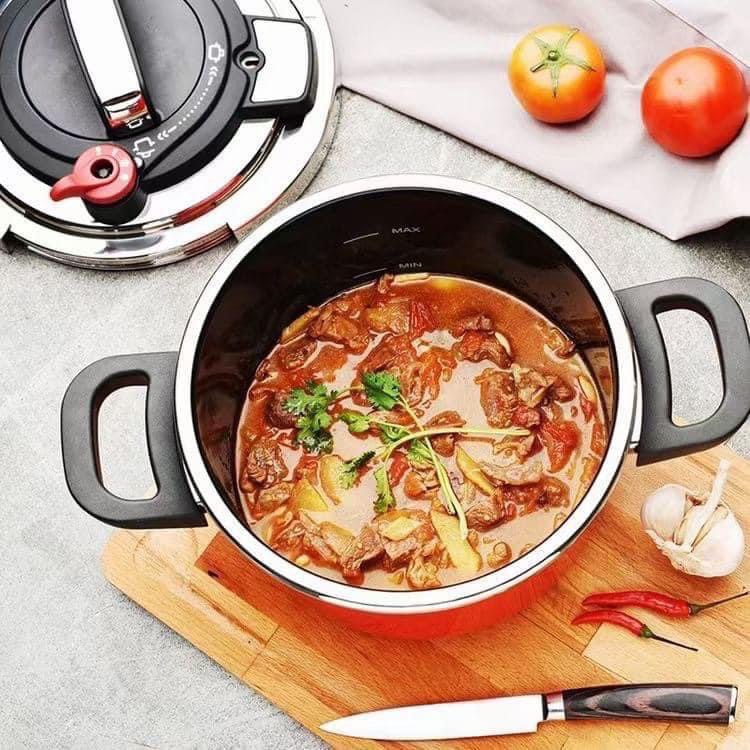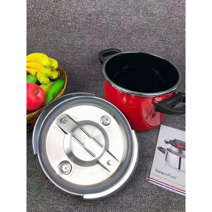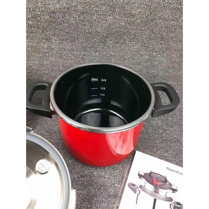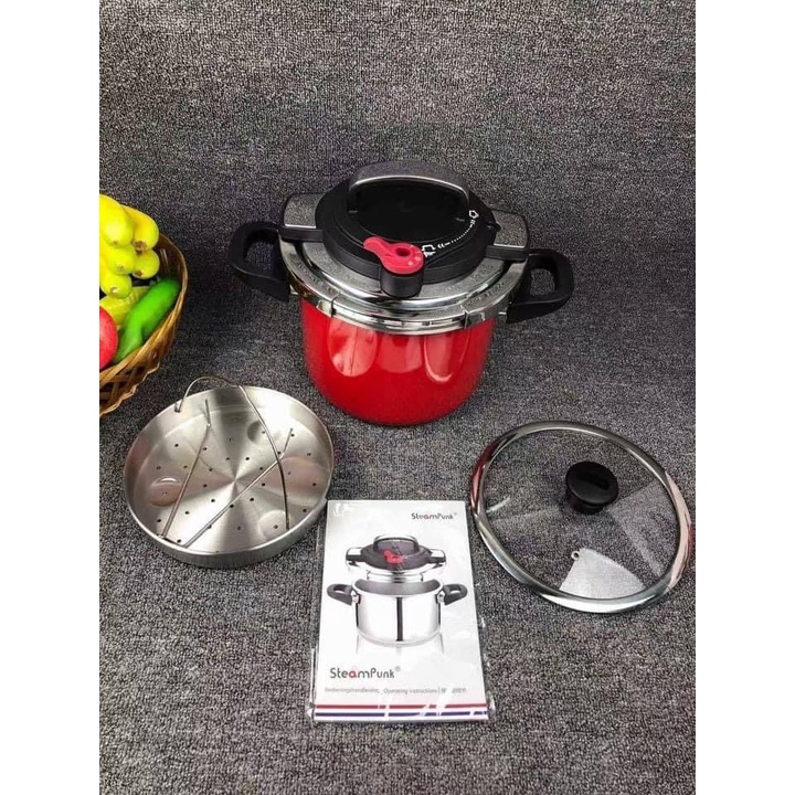 Em vừa về thêm em áp suất siêu hịn SteamPunk của Đức, vừa tiết kiệm điện năng lại tiết kiệm thời gian đúng chất Châu ÂuHàng đun trên bếp từ và các loại bếp, có kèm khay hấp và vung kính nên dùng rất đa năng: Có thể ninh, hầm với chức năng áp suất. Đun nấu như nồi thường với vung kính. Hấp đồ với vỉ hấp đi kèm.
