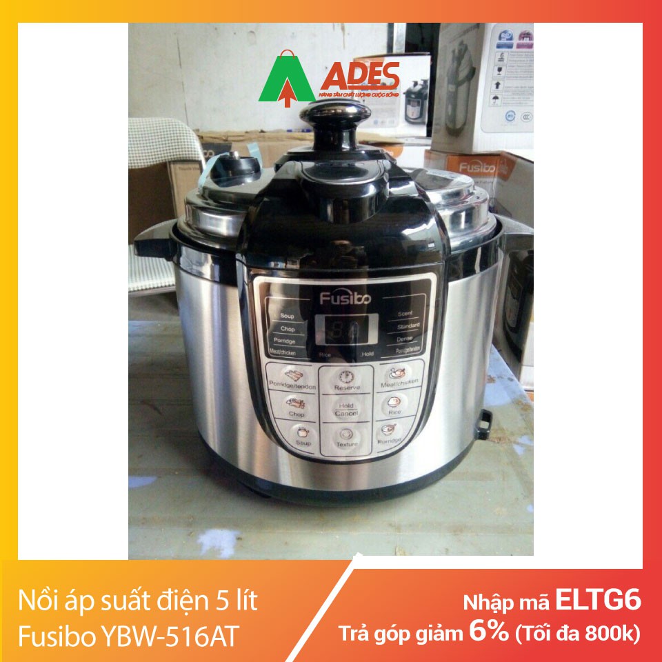 - Nồi áp suất điện 5 lít Fusibo YBW-516AT có thiết kế hiện đại, công suất 900W, dung tích nồi 5 lít, lõi nồi được phủ men chống dính, dễ dàng nấu nướng với chế độ nấu cài đặt sẵn.