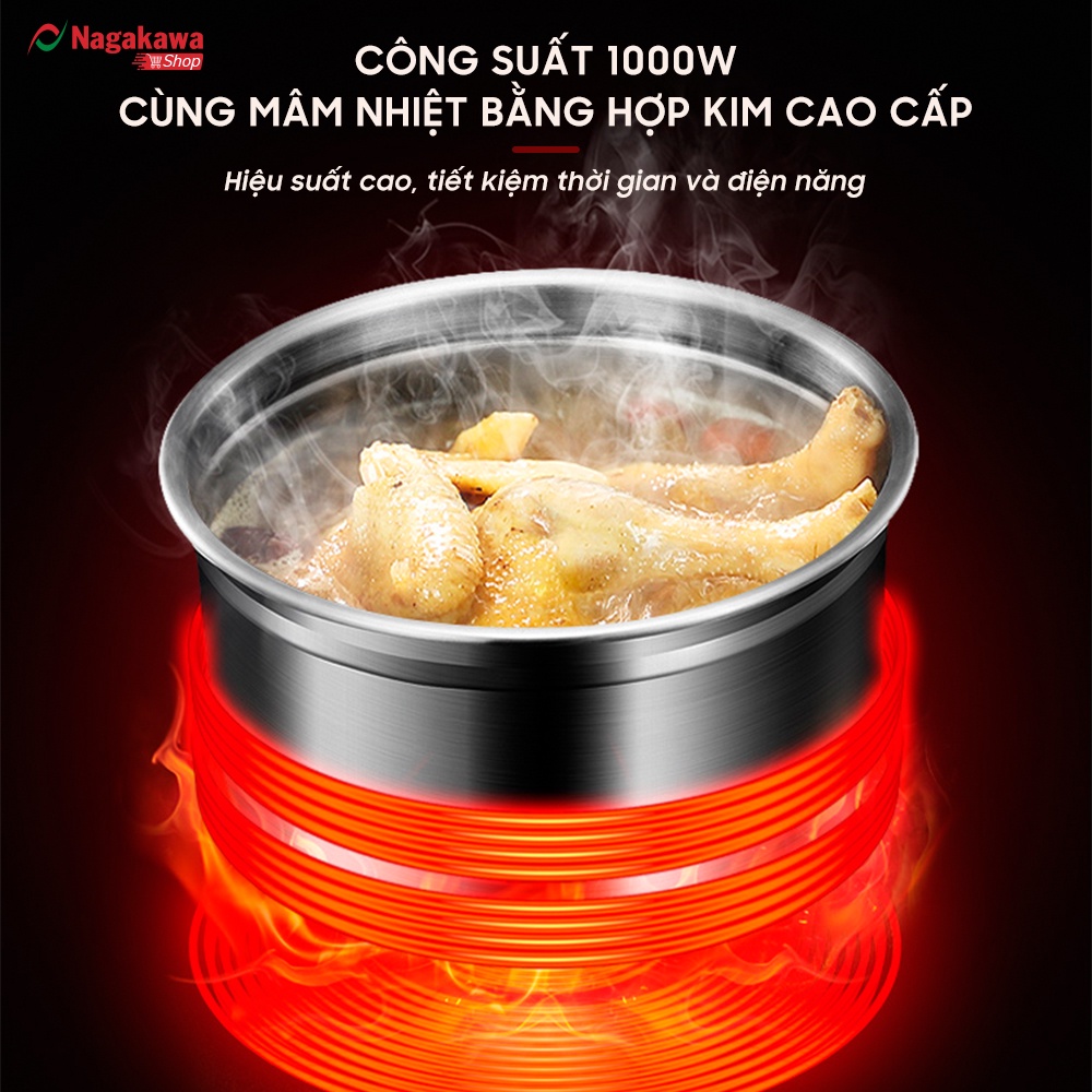 - Nagakawa NAG0205 được thiết kế đa chức năng, có thể sử dụng trong việc nấu, om, hầm các loại thực phẩm khác nhau mang đến cho bạn và người thân những món ăn thơm ngon mà vẫn giữ nguyên được chất dinh dưỡng.