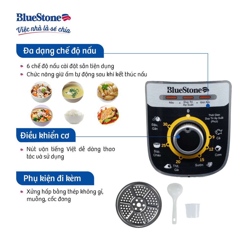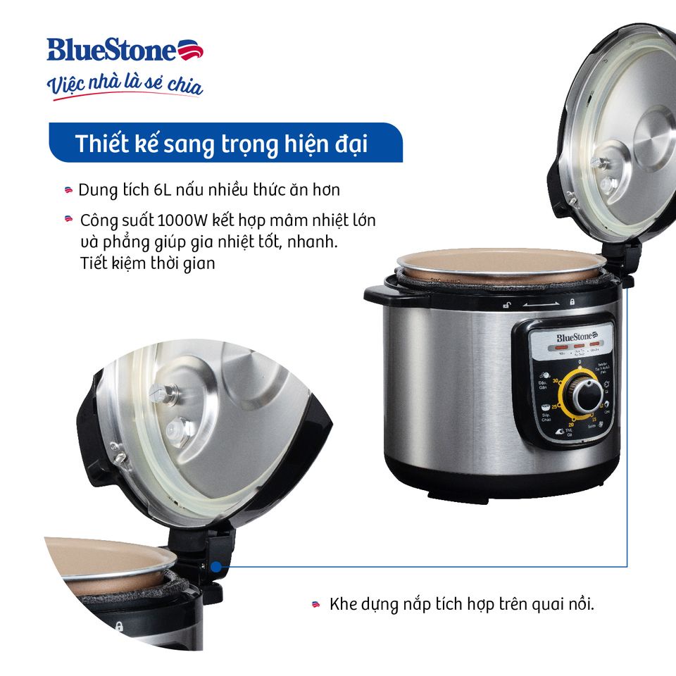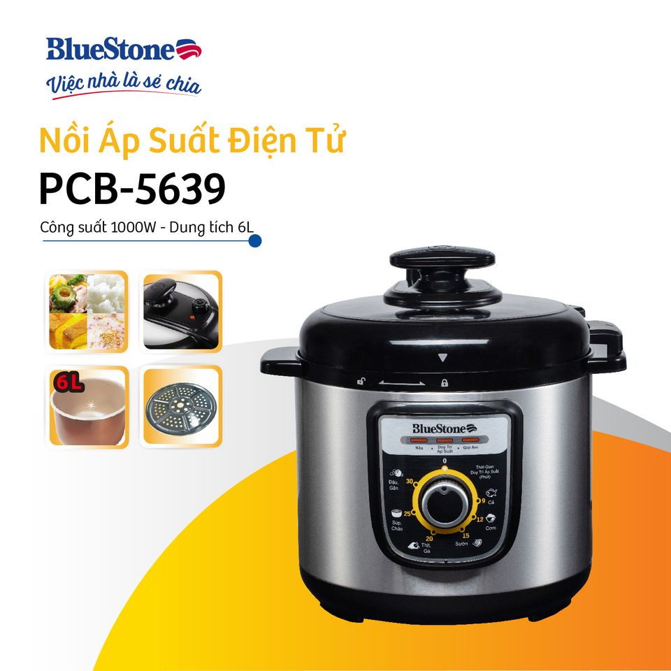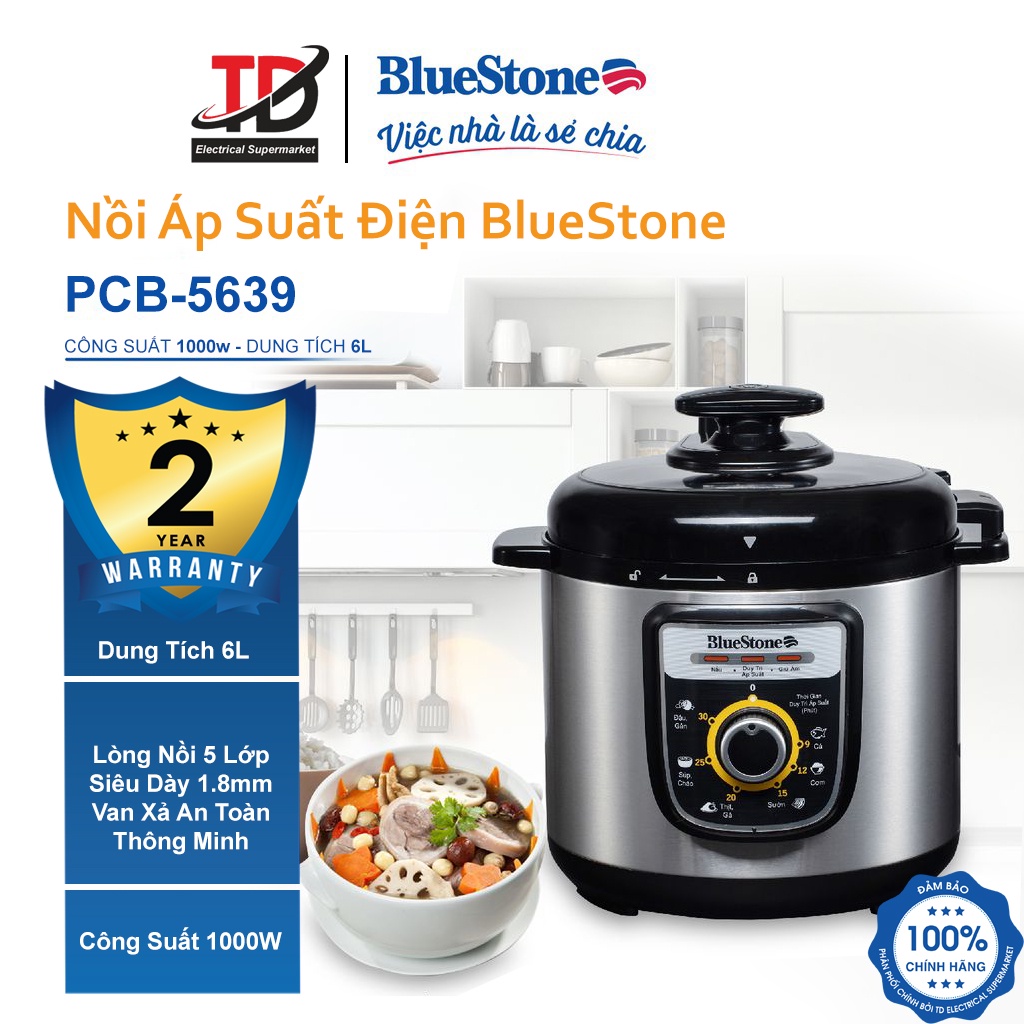 Nồi Áp Suất Điện Bluestone PCB-5639, 6Lit-1000W , Lòng Nồi 5 Lớp Siêu Dày , Bảo Hành Chính Hãng 2 Năm☑ CAM KẾT