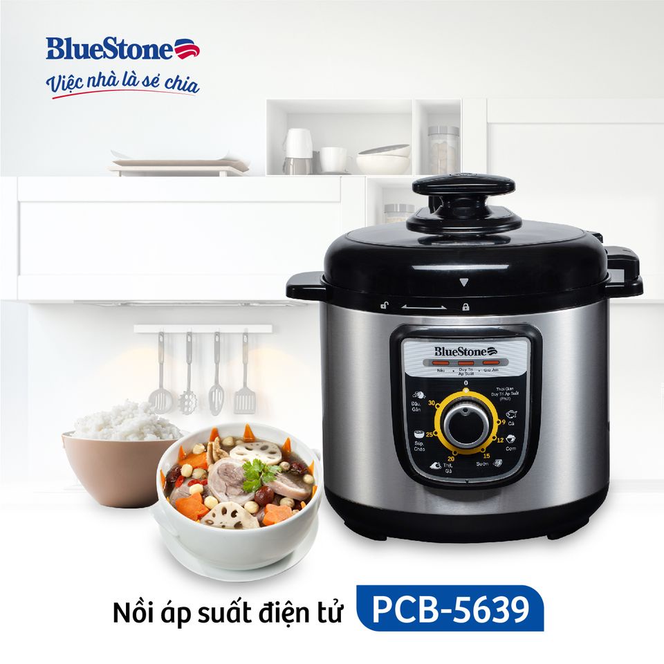 Nồi Áp Suất Điện Bluestone PCB-5639, 6Lit-1000W , Lòng Nồi 5 Lớp Siêu Dày , Bảo Hành Chính Hãng 2 Năm