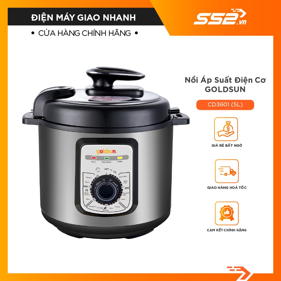 Thiết Bị Điện Gia Dụng > Đồ gia dụng nhà bếp > Nồi áp suất || Nồi áp suất điện cơ Goldsun CD3601 (5L)-Bảo Hành Chính HãngCòn hàng