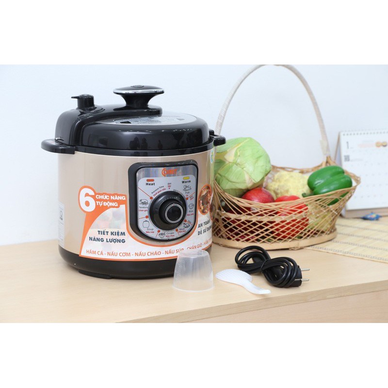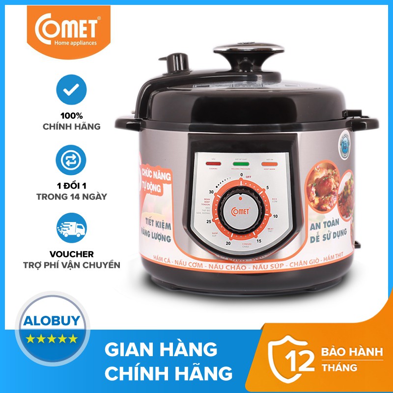 - Nồi áp suất Comet dung tích 5L hỗ trợ bạn nấu và hầm các món ăn trong thời gian ngắn, giúp tiết kiệm thời gian và công sức khi nấu nướng. Nồi với 10 chức năng như hầm đậu, thịt bò, gân, xương và nấu các món cơm, canh, súp, cháo…, thức ăn được nấu bằng nồi áp suất sẽ có vị thơm ngon mà không bị mất chất dinh dưỡng. Nồi áp suất Comet còn có thiết bị điều chỉnh nhiệt và nắp khóa an toàn, đảm bảo an toàn tuyệt đối cho người sử dụng.