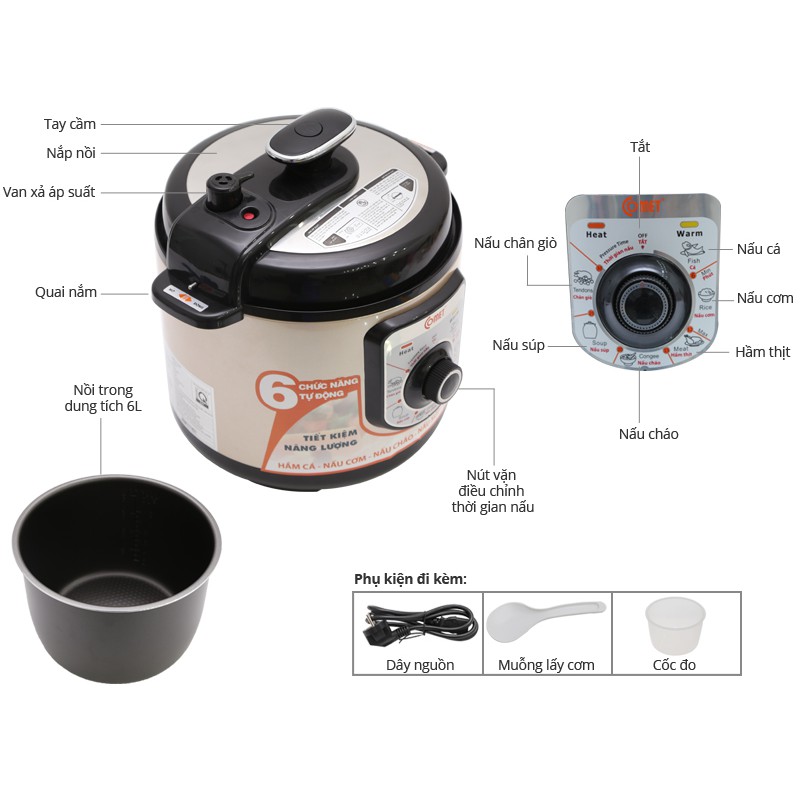 - Nồi áp suất điện đa chức năng: Hầm, hấp, kho, nấu, làm bánh..... tiết kiệm điện năng và thời gian nấu.