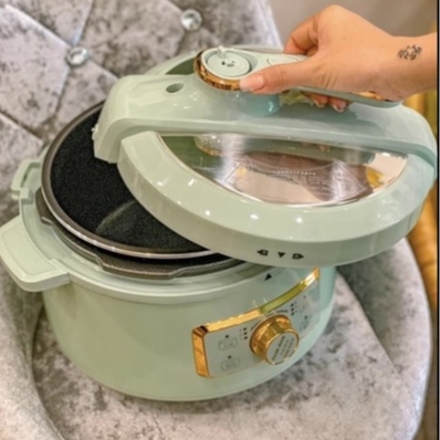- Lần đầu tiên có 1 chiếc nồi áp suất ( hầm cháo, hầm xương củ quả, hầm thịt... cực kỳ nhanh) lại có thể chiên xào, nấu cơm, và tích hợp nấu nẫu được ( vì có tặng kèm chiếc nắp đậy thứ 2)