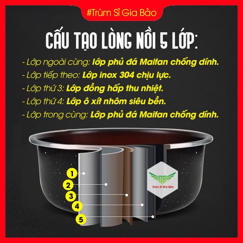 - Cấu tạo lòng nồi 5 lớp: