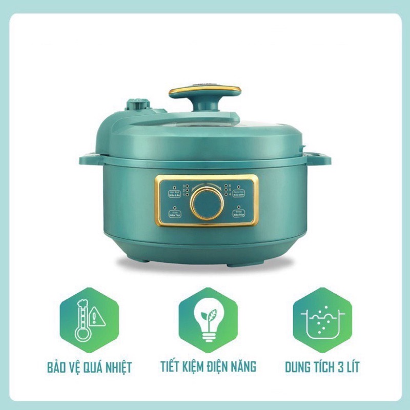 Nồi áp suất điện đa năng-dùng tích 3lít, nồi hầm, nồi nấu lẩu, nồi nấu ăn, nồi nướng, chiên, xào