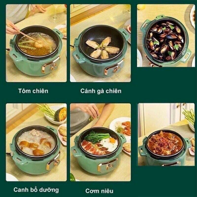 - Chức năng: Nấu lẩu, hầm, chiên, xào, rán..., nồi áp suất, nấu cơm, nấu mọi loại thức ăn đều được.