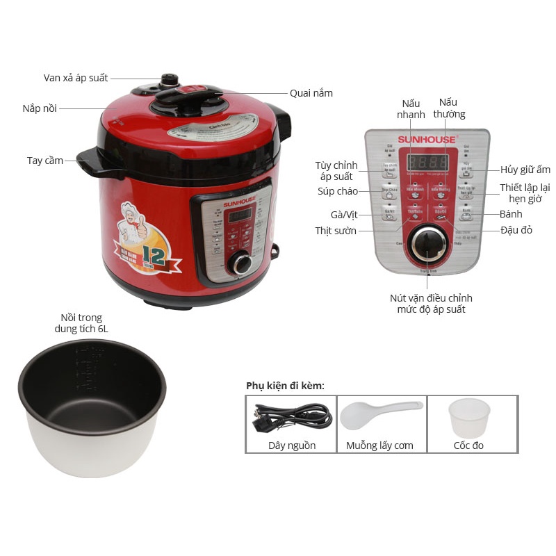 Chức năng: Nấu cơm, giữ ấm, hầm, ninh, làm bánh, nấu súp